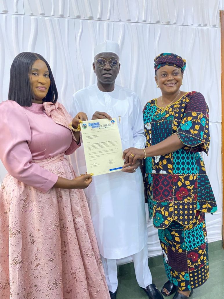 National Coordinator of the Forum, Ambassador Dorcas Peter Azi presenting a letter of appointment to Senator Wadada By Our Reporter In a strategic move aimed at consolidating its organisational strength ahead of the 2027 general elections, the Dynamic Women for Tinubu 2027 Forum has appointed Senator Ahmed Wadada Aliyu as Chairman of its Board of … Continue reading Dynamic Women for Tinubu 2027 Appoints Sen. Wadada as BoT Chairman