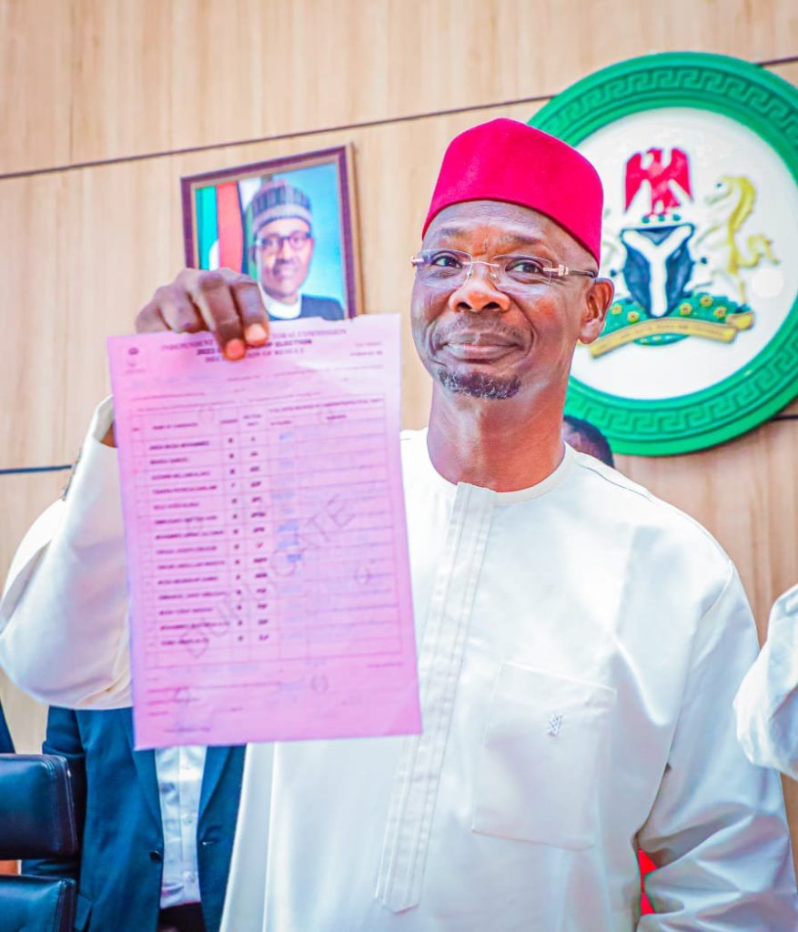 INEC officially declared Engineer Sule as dully reelected for another term in office, having scored 347, 209 votes to beat Hon David Ombugadu of the Peoples Democratic Party (PDP), who scored 283, 016 votes.