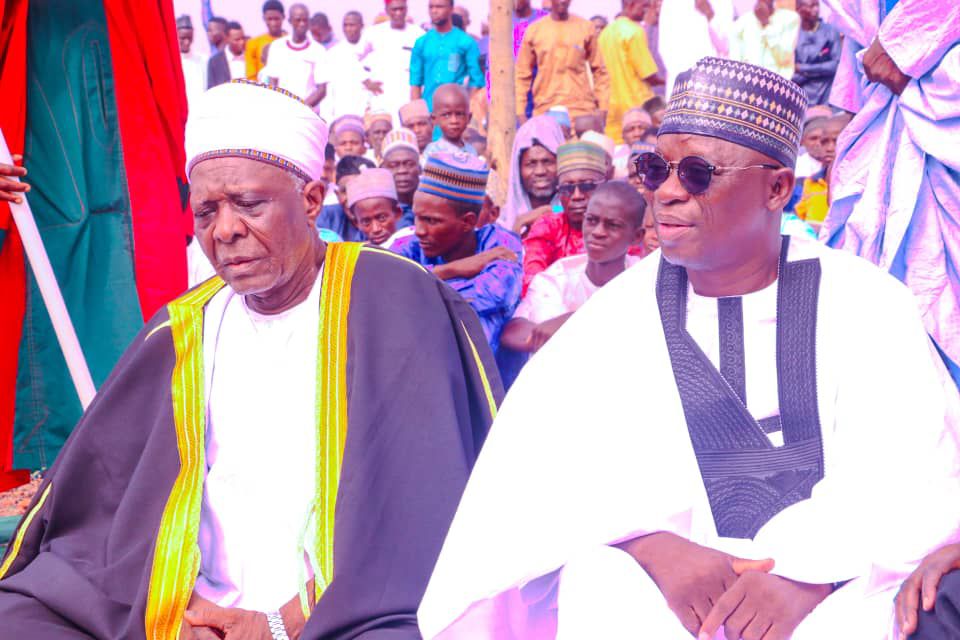 The Immediate past Speaker of Nasarawa State House of Assembly Alh Ibrahim Balarabe Abdullahi and the First Class Traditional Ruler of Egbura People in Nasarawa State HRH Alh. Usman Abdullahi today attended the Eid-el – Fitr prayer with their people in Umaisha, Toto Local Government Area of the State.
