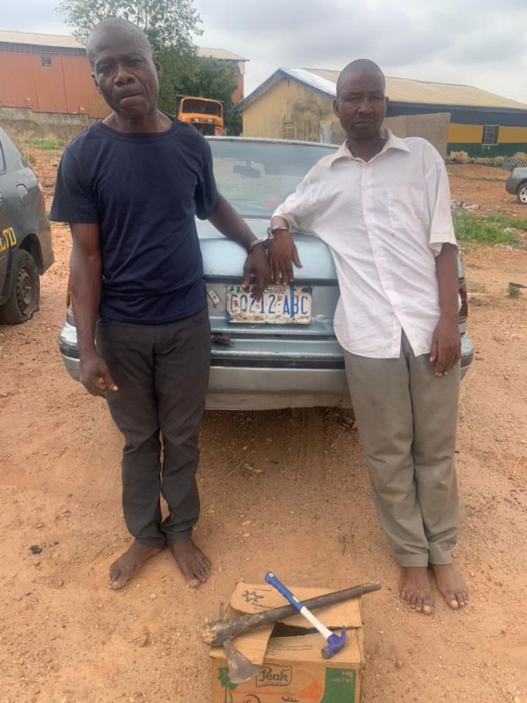Items recovered from the suspects include a Toyota carina II vehicle with registration number Abuja CO 212 ABC, one Axe and Hammer.